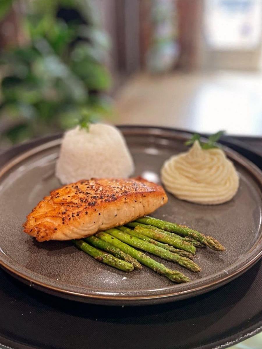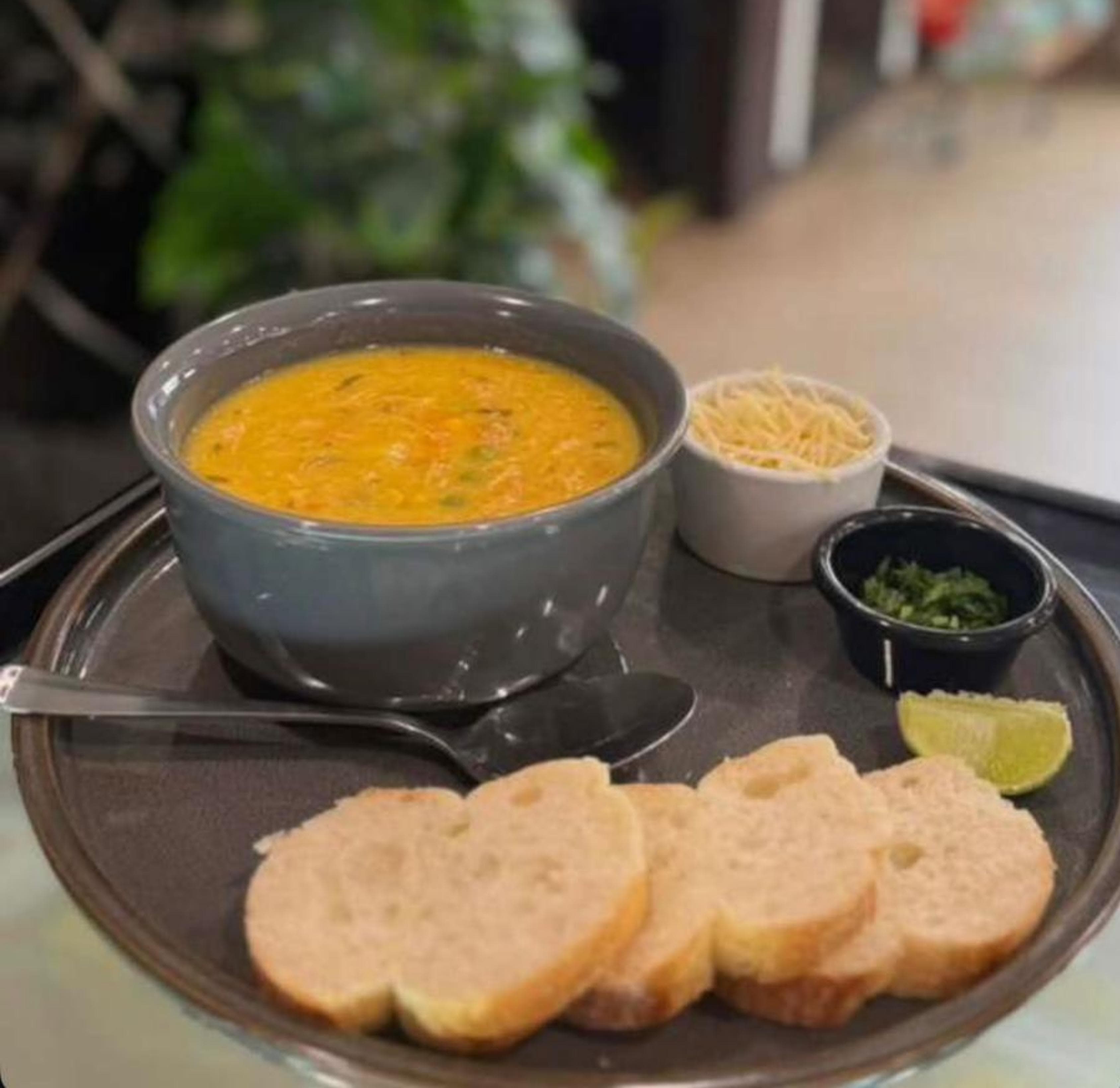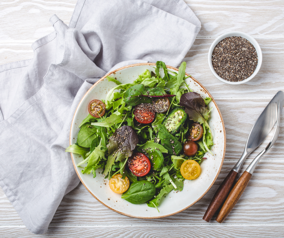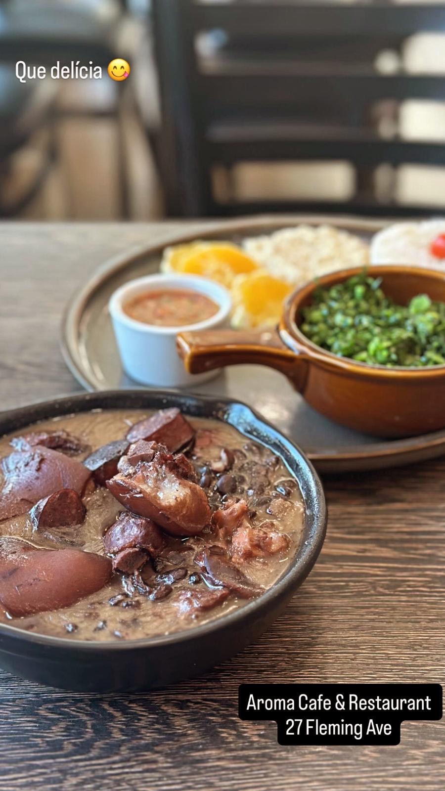 Salada Aroma $8.25 Mix de folhas verdes, tomate cereja, cebola roxa, azeitona, torradas, abacate e chia.