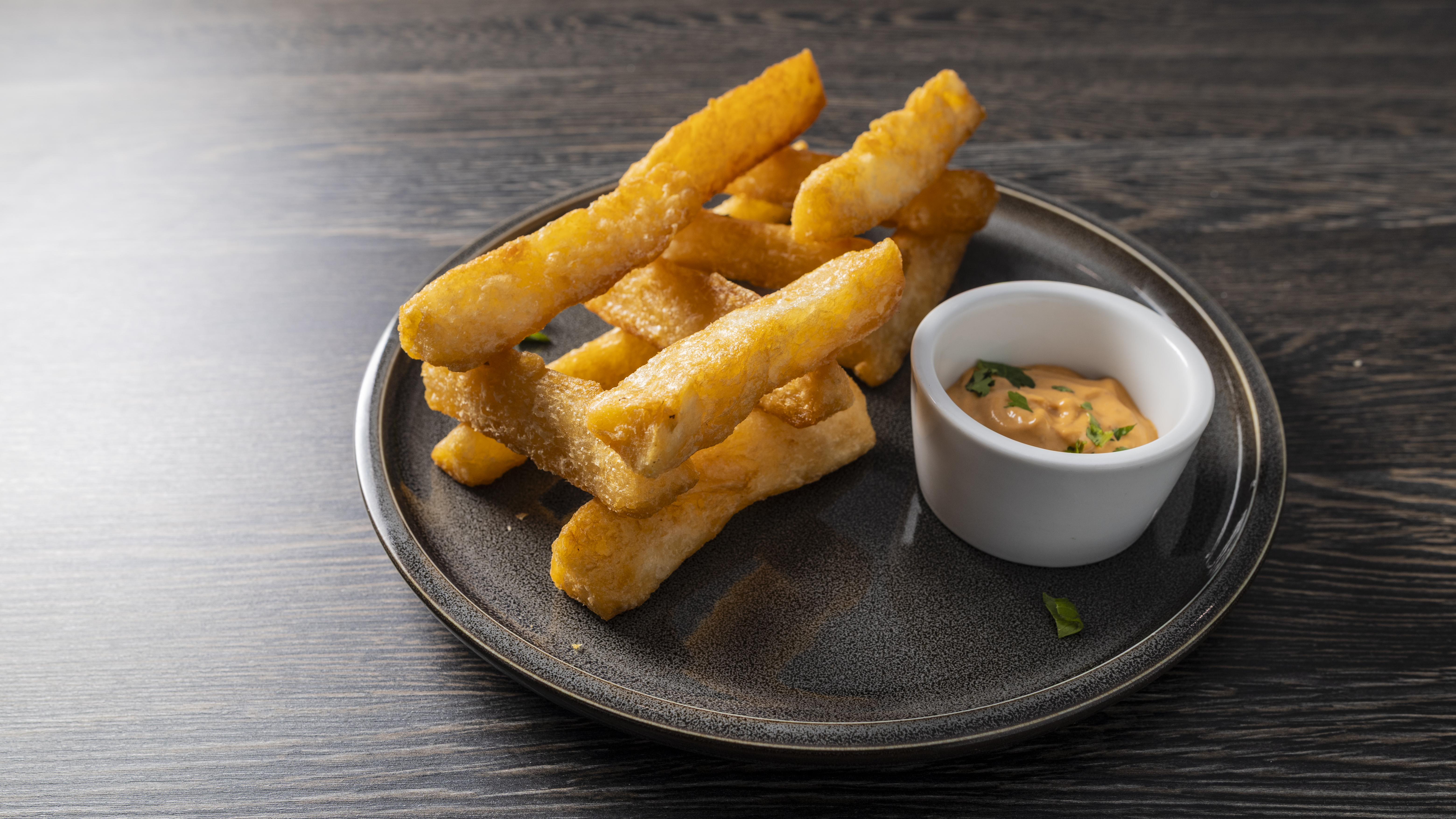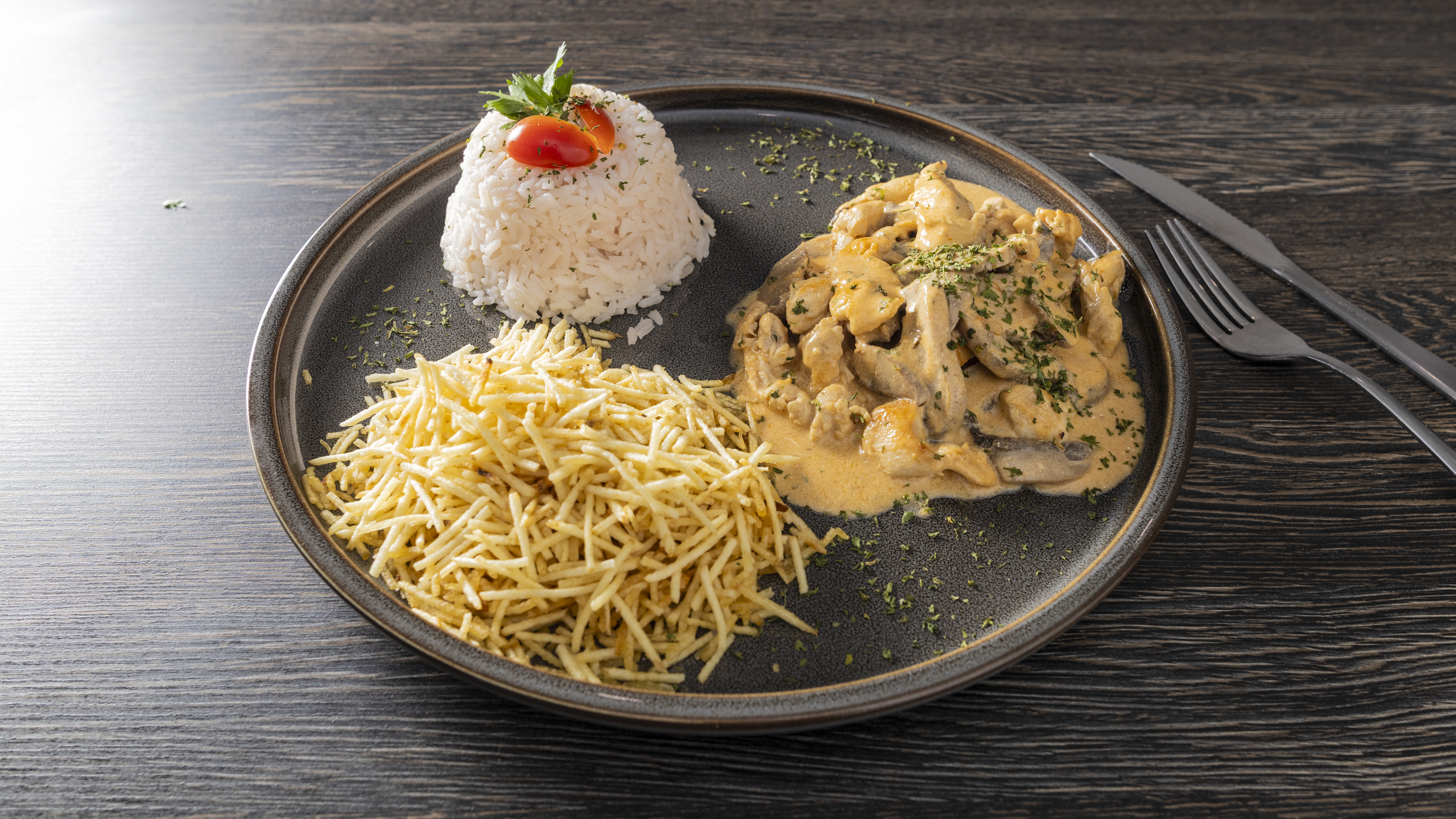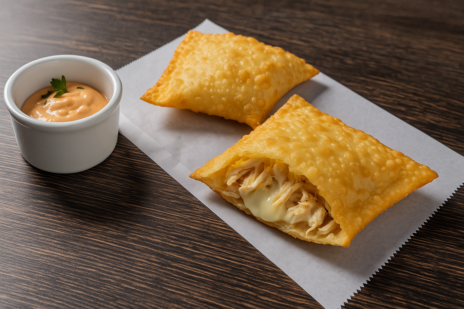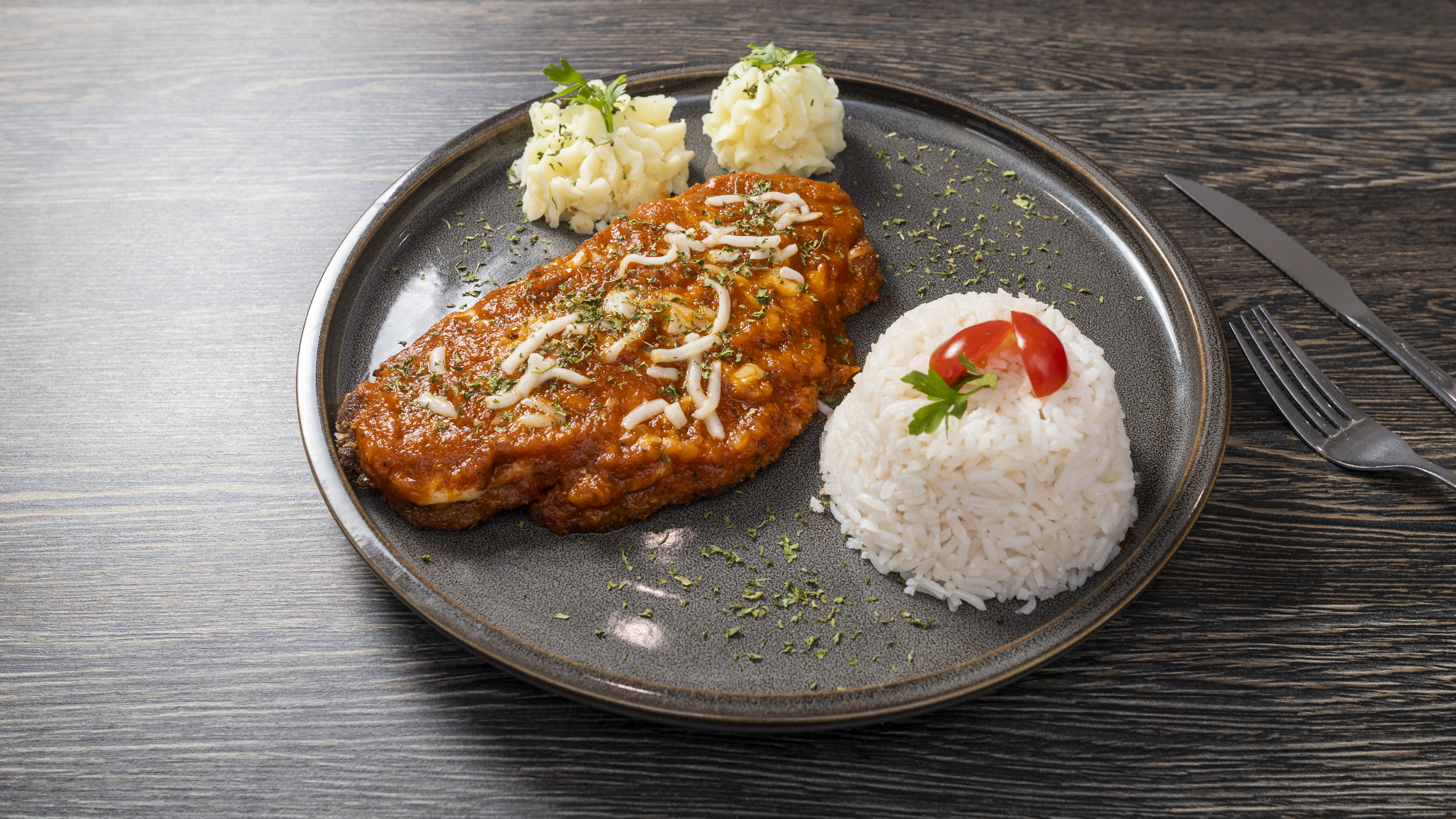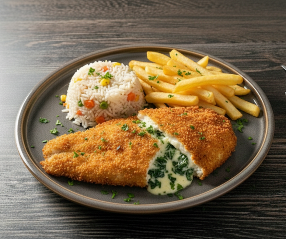 Tilápia Empanada Recheada $23.75 Tilápia empanada recheada com camarão, arroz especial e batata frita.
