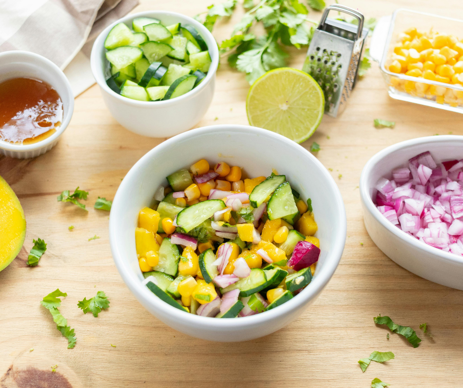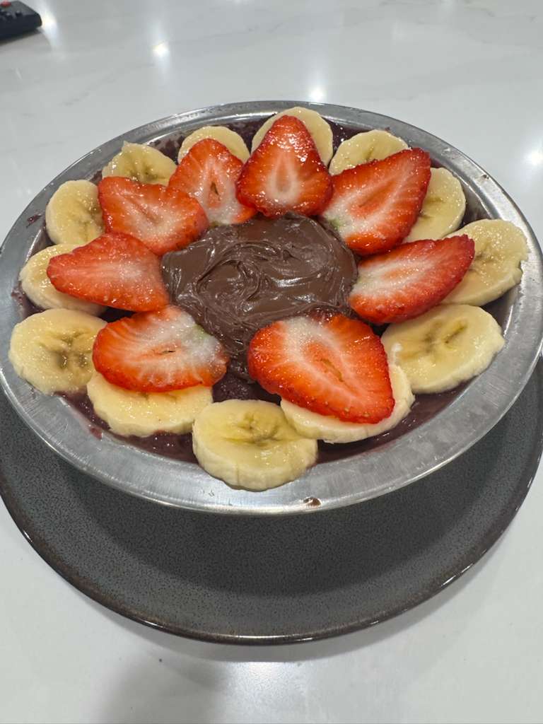 Salada Mista $6.75 Rúcula, alface, tomate, milho, cenoura, cebola, palmito, manga e chia. Opção de adicionar frango (+7), camarão (+9), salmão (+12) ou picanha (+12).